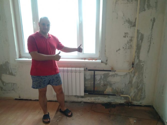 A próxima etapa do trabalho foi a instalação e conexão das baterias - radiadores bimetálicos. Eles são feitos de dois metais. Fabricado em aço, que possui resistência, e alumínio, que possui excelente condutividade térmica e ductilidade. A estrutura do radiador bimetálico pode suportar cargas de alta pressão. A caixa dos radiadores bimetálicos é feita de alumínio e seu formato é estriado. É assim que o radiador é projetado para uma melhor dissipação de calor.