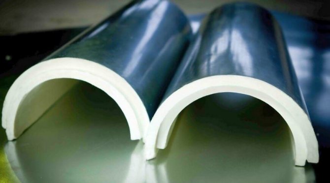 Ao contrário da lã mineral, o poliestireno expandido tem uma estrutura rígida, portanto não se realiza na forma de lajes (como nas paredes ou no chão), mas sim na forma de uma concha - tubos de 2 ou 4 segmentos, fixados externamente e formando um casulo sólido. As peças pré-fabricadas são conectadas de acordo com o princípio “espinho-ranhura” e coladas ou envolvidas com uma atadura de fitas. Existem tipos de folhas reforçadas que são mais eficazes.