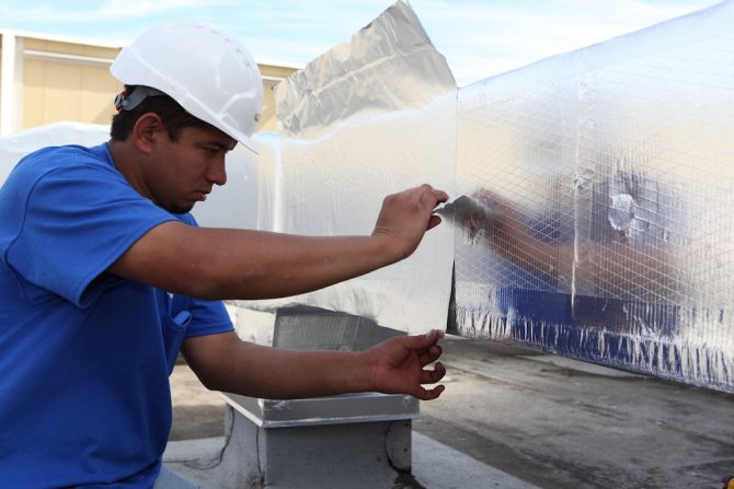 6. No final da obra, a conduta de ar isolada é fechada com uma camada de impermeabilização e uma caixa de protecção mecânica (utiliza-se neoprene, chapa de alumínio ou chapa galvanizada). Para impermeabilização de alta qualidade, você deve usar materiais duráveis e confiáveis com a vida útil mais longa possível. A capa protetora deve resistir aos efeitos do vento, precipitação, radiação solar e temperaturas extremas.