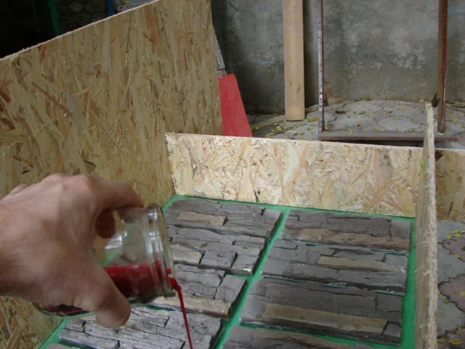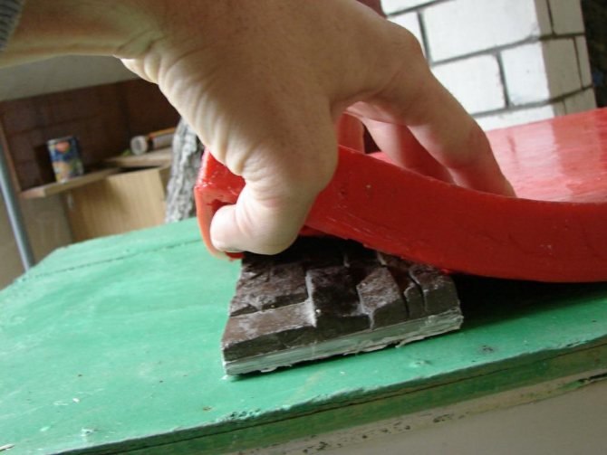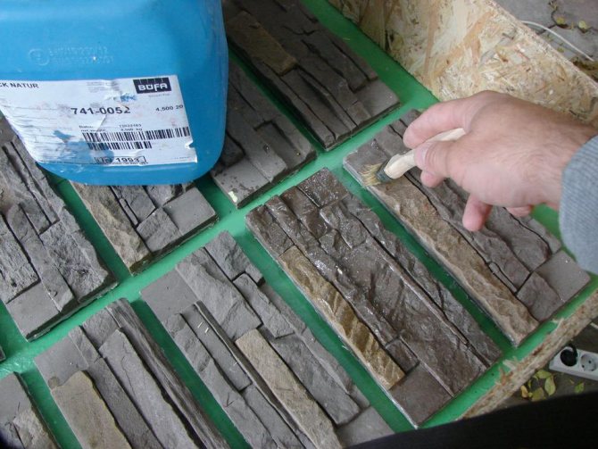 Passo três. Preparando a superfície. Mestre do modelo - distribuir as amostras no interior da cofragem. A superfície e todas as faces da fôrma com as quais o poliuretano irá interagir são tratadas com um agente desmoldante. É importante observar o meio dourado: não use muito da composição, mas aplique de forma que a futura forma não grude ao ser removida. Normalmente, são 2-3 pinceladas.