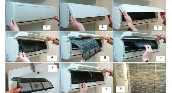 - демонтирайте филтърния елемент (как да направите това можете да намерите в инструкциите за сплит системата);
