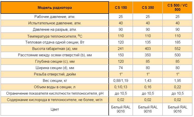 Изделия от чугун са подходящи за частни и жилищни сгради до пет етажа. Във високи сгради може да възникне много високо налягане, което може да доведе до скъсване, поради което се избират биметални модели.