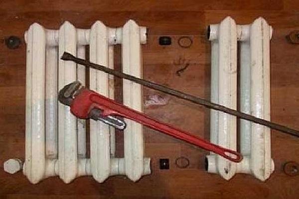 Важно! Дори нова чугунена батерия, монтирана на отоплителни тръби, не трябва да се разглобява, максимумът, който може да се направи, е да се развият щепселите. В противен случай радиаторът може лесно да бъде повреден, например чрез разделяне на зърното.