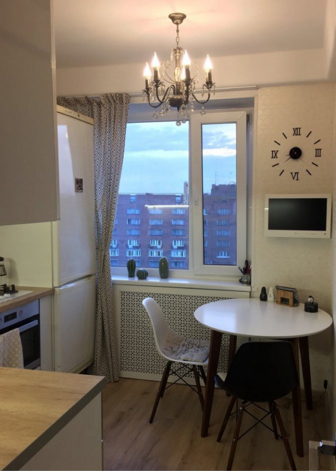 - Екран или кутия поне малко, но "изяжда" пространството около радиатора. В края на краищата, всички елементи трябва да бъдат инсталирани на разстояние 5-10 см от батерията.