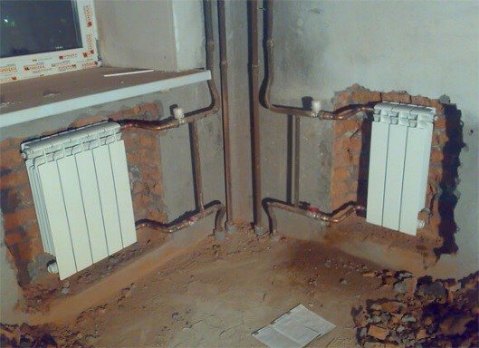 Ако в стената зад батериите има вдлъбнатина за батерията - ниша, тогава довършителните технологии в този случай са малко по-различни. Можете да научите повече за тях в отделна статия: довършване на ниша под отоплителна батерия.