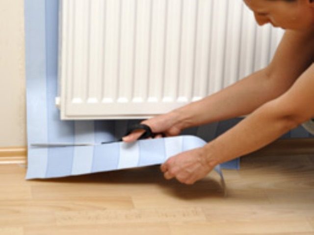 Не е толкова трудно да се справите с тапета и най-важният момент ще бъде плътното притискане на панела към повърхността. Изрязаното острие се намазва с лепило, избутва се зад радиатора и се изравнява там с помощта на дълга четка с извита дръжка или друго подходящо устройство. Мехурчетата не могат да бъдат премахнати напълно, но на това място те са практически невидими и този момент няма да бъде най-критичният. Основното нещо е да залепите парче тапет добре, за да не се отлепи по-късно.