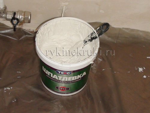 Веднага щом получите снежнобяла стена, трябва да я грундирате веднъж (отделяме 2 часа за разреждане на грунда, нанасяне и изсушаване) и незабавно да пристъпите към шпакловката. Тук можете също да го направите по-лесно, отколкото ние при запълване на големи стени. Изобщо не е необходимо да купувате суха смес и да я приготвяте. Напълно възможно е да се направи с готов шпакловъчен материал. Това значително ще спести време:
