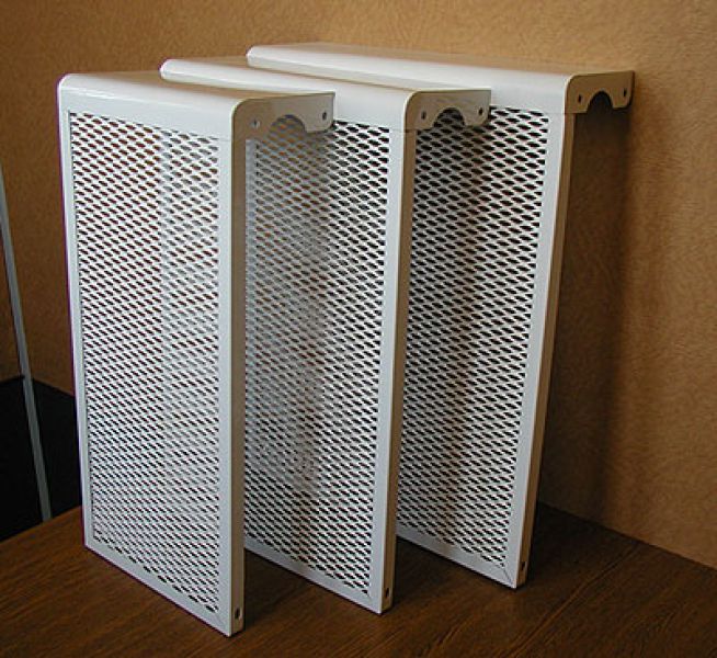 Вътрешната повърхност на металните решетки е специално боядисана в черно, за да се увеличи допълнително нивото на топлинно излъчване. Предимството на такъв екран е, че той не отделя вредни вещества при нагряване, като решетка, изработена от MDF, и не се деформира като дървен екран. Кованите метални решетки за отоплителни радиатори сега са широко разпространени.