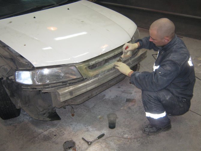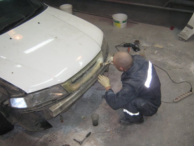 За да направите това, използвайте груб шкурка, пясък P 40-60, той се справя най-добре с такива задачи. След обработка на фибростъкло с груби абразиви ще останат различни малки пори и неравности. За тях сме подготвили универсален автомобилен пълнител.