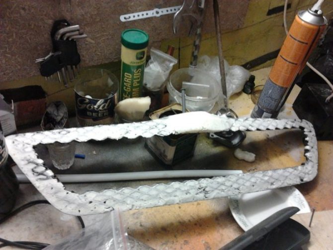 За да направите чисто нов решетка от радиатор от фибростъкло, трябва да направим матрица или рамка на бъдещия продукт. Като рамка ще използваме решетката на радиатора. Но това не винаги е задължително. В зависимост от вашето въображение и дизайнерските характеристики на автомобила, първоначалната рамка може да бъде например броня за кола, оптика и добавянето на различни материали (картон, пяна, пластилин, дърво) към този състав.