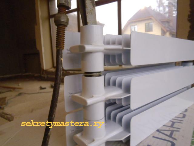 След това върху тях е монтирана радиаторна секция, също много стегната. Ако всичко е наред, тогава секцията изобщо не се измъчва, въпреки че не е изкривена.