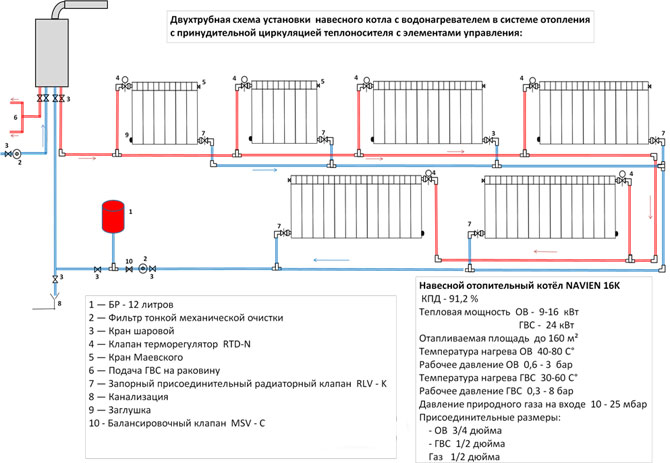 Двуконтурната отоплителна система е по-ефективна по отношение на топлопреминаването с около 10% и се счита за по-модерна.