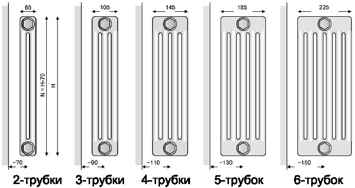 Тези радиатори се различават предимно от панелния тип в много по-голяма отоплителна площ. Възможно е да се регулира мощността дори на етапа на закупуване (поръчка) чрез увеличаване / намаляване на височината на тръбите и техния брой. По въпроса за цвета и покритието всичко е същото като при панелните.