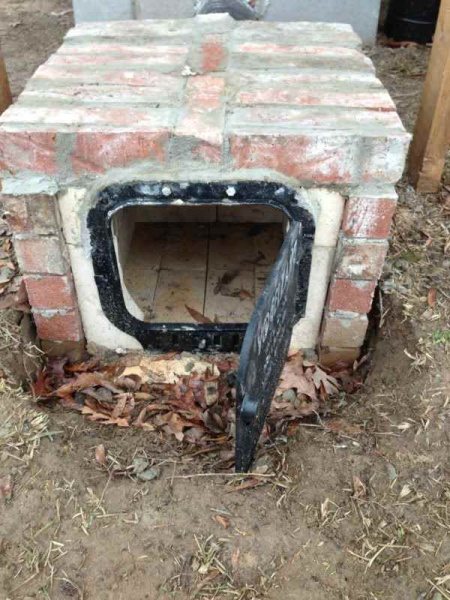Тръбата трябва да бъде положена в земята. Това допълнително ще намали температурата на дима. Противоположният край на тръбата, която трябва да бъде положена, трябва да бъде разположен в камината, разположена в ямата под нивото на хладилника. Ямата трябва да бъде поставена от огнеупорни тухли.