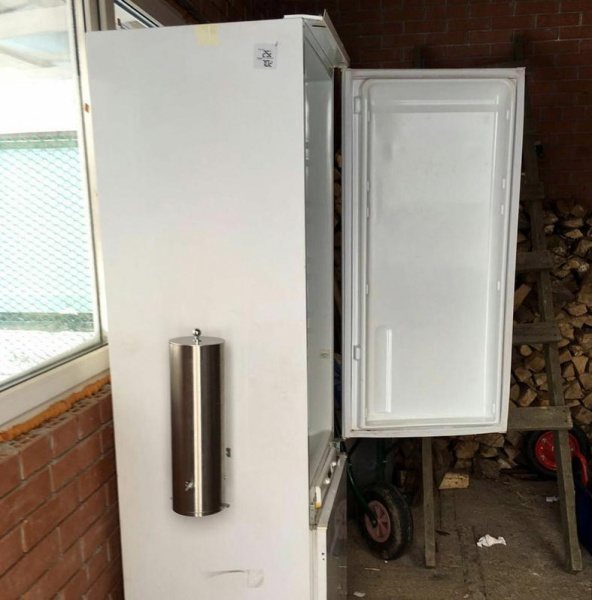 Ако е създадена конструкция за пушене със собствените си ръце от хладилник и електрическа печка, често това устройство не се побира поради факта, че тялото се стеснява отдолу. Решението на този проблем е съвсем просто - просто трябва да обърнете хладилника.