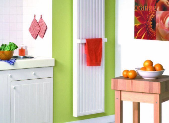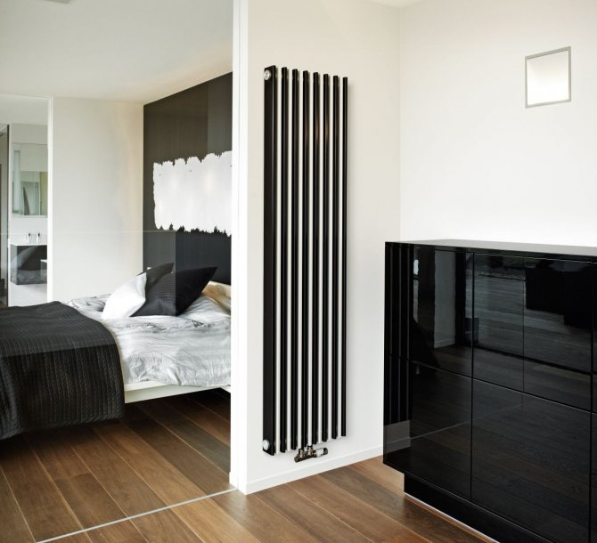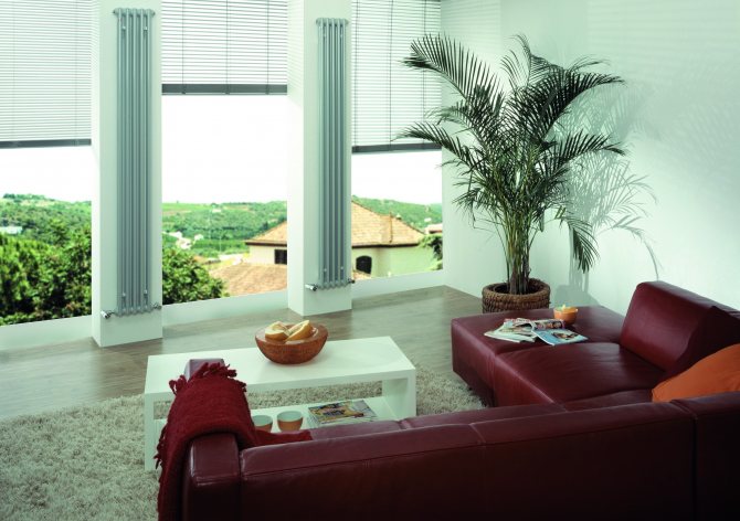 Художествената стойност на батериите с вертикална инсталация не предизвиква никакви съмнения: те често са незаменими, особено в помещения с колони, високи прозорци на цялата стена, голям брой отвори и ниши в стените.
