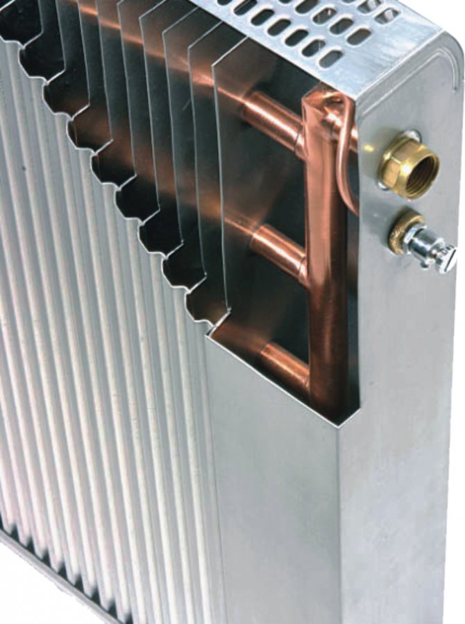 Този тип радиатори и конвектори, с малки размери, имат висок топлообмен. Обикновено това е медна тръба, върху която са фиксирани алуминиеви плочи. Това устройство е скрито в боядисана стоманена обвивка (понякога се среща в неръждаема стомана). Повечето производители на пазара произвеждат ниско медно-алуминиеви радиатори: