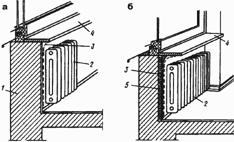Тесните отоплителни радиатори, обикновено инсталирани в ниша под прозорец, може да не образуват топлинна завеса - те няма да могат да прекъснат потока от студен въздух, падащ по страните на устройството.