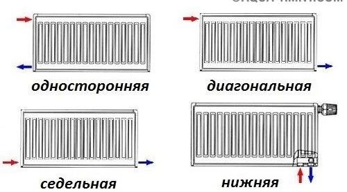 Долната връзка е оправдана при инсталиране на малки отоплителни радиатори или такива от стоманен панел, когато свързвате нагревателя от едната страна.