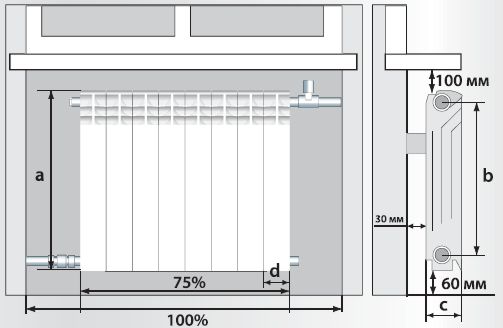 Освен това има специални норми за местоположението на отоплителните устройства, които трябва да се спазват. Тоест батерията трябва да бъде поставена поне на: