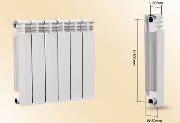 350, 500 и 200 мм. Те указват стойността на разстоянието между центровете между колекторите. Но в продажба има модели с разстояние между осите, които се различават от стандартните. Тя може да бъде от 200 до 800 мм. И за да изчислите височината на алуминиевия радиатор, трябва да добавите 80 mm към тази стойност.