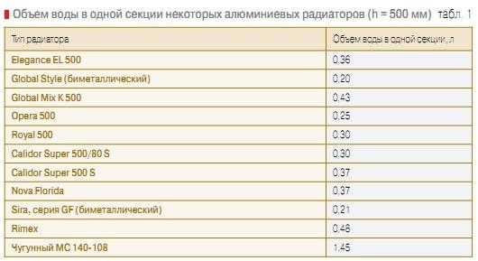 Има десетки производители на алуминиеви радиатори, продуктите на всеки от тях се различават по дизайна и размерите на вътрешните канали. Следователно може само грубо да се каже колко вода има в една секция на алуминиев радиатор.