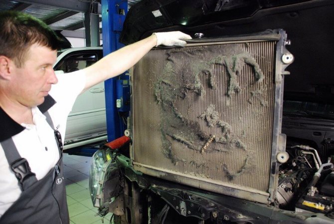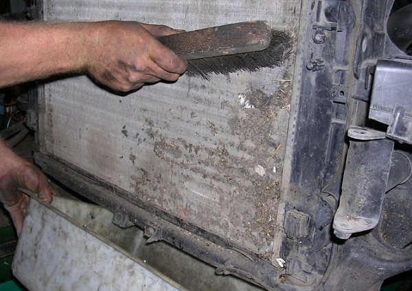 Тези фактори не трябва да се пренебрегват, което може да доведе до прегряване на двигателя, което ще бъде сигнализирано не само от сензора, но и от откъснатата от парата капачка на разширителния резервоар, но почистете топлообменника отвътре или отвън в зависимост от вид замърсяване.