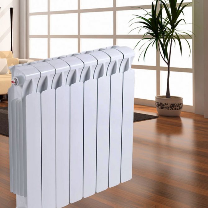 Всяка секция на биметалния радиатор се състои от вътрешна стоманена част под формата на вертикално разположени тръби, а отгоре са фиксирани алуминиеви плочи, които осигуряват привлекателен външен вид и служат като източник на топлопренос. Секцията е монолитна, фугите на отделни сегменти се правят чрез безшевно заваряване с използване на уплътняващи материали. Вътрешната част на стоманената сърцевина е покрита с тънък слой сребро, което увеличава устойчивостта на продукта на корозия и удължава експлоатационния му живот. Алуминиевият корпус е позициониран по такъв начин, че максимизира преноса на топлина към външната среда, докато дизайнът е ергономичен и атрактивен, така че радиаторите изглеждат добре във всеки интериор.