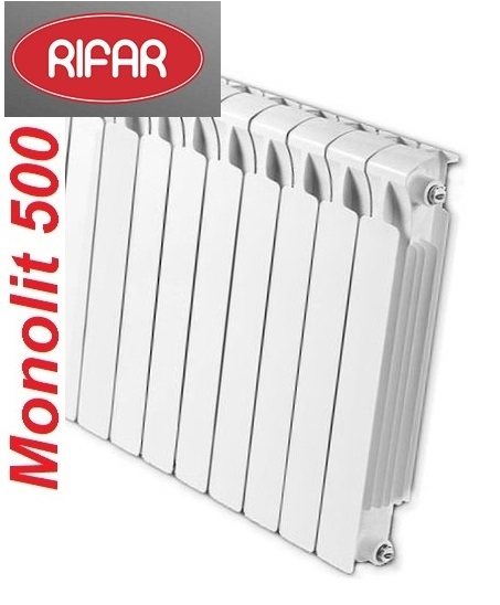 Моделът Rifar Base 500 се счита за оптимален избор за помещения, които имат значителни кадри или не са много добре изолирани. Всяка секция включва тръба от неръждаема стомана. За основния материал се използват алуминиеви сплави. Процесът на леене се извършва при повишено налягане, което гарантира висока якост и издръжливост. Стените на перките са достатъчно тънки, за да осигурят възможно най-висок топлообмен.