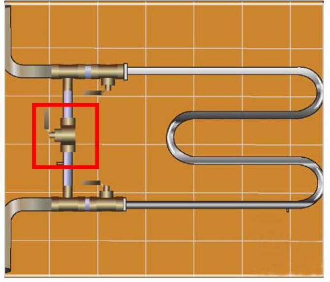 - Поставете линиите до мястото, където трябва да се инсталира оборудването. Ако се използват стоманени елементи, частите трябва да бъдат свързани чрез устойчиво заваряване или специални резбови съединители, точките на свързване са запечатани с теглич или синтетична лента. Пластмасовите линии трябва да бъдат запоени с помощта на специален инструмент. В каналите за подаване и отвеждане на течността са предвидени сферични кранове; пред клапаните има джъмпер (байпас), който позволява да се поддържа циркулацията на водата при изключена сушилня за кърпи.