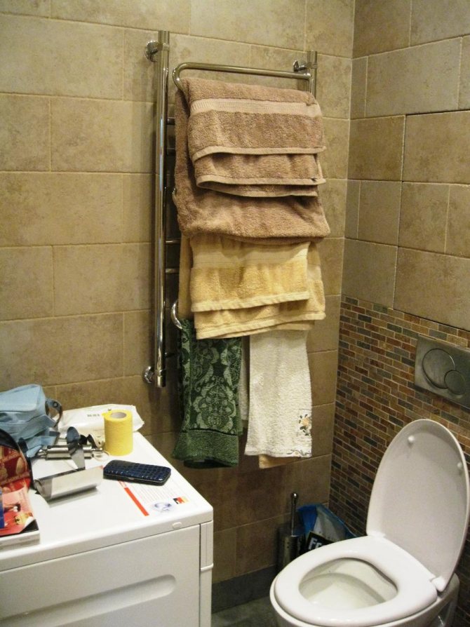 Струва си да изберете правилното място за монтаж, както беше споменато по-рано, най-добре е да инсталирате подгряваща релса за кърпи над пералнята, около сто и двадесет сантиметра, и достатъчно разстояние от тръбопровода.