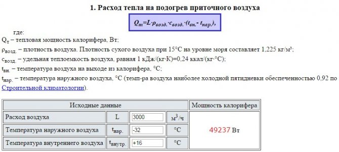 Топлинната мощност на нагревателите KVTZ се изчислява по формулата (30.11) при и