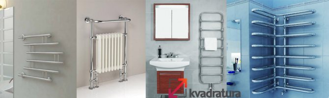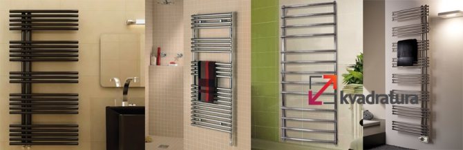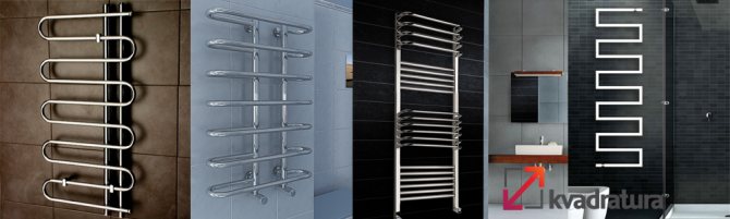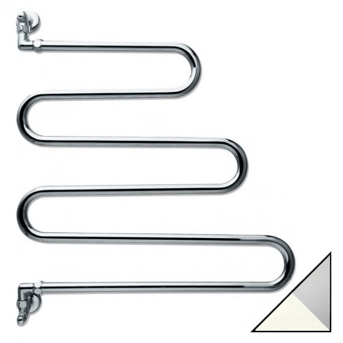 Водни нагреватели за кърпи, изработени от неръждаема стомана с удобна форма (с буквата М или стълба, с многостепенни рафтове или спирали) това е най-сигурният избор... Особено ако не вземате модели с въртящи се функции. Завоят винаги е удобен. Но всяко механично движение винаги води до износване на оборудването и приближава момента, когато фонтан от ръждясала вряща вода ще се излее от отоплителната тръба.