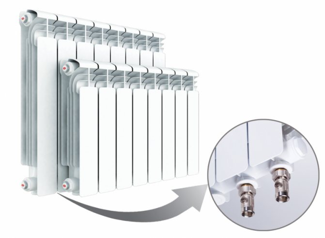 Продадените в сглобяване радиатори (например Conner, STI Breeze и някои други) се формират от броя на секциите, предназначени за помещения с различни размери въз основа на инженерното изчисление на необходимата топлинна мощност на квадратен метър от помещението.