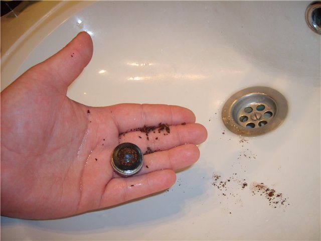 Голямо количество ръжда под формата на слоеве се отлепва от старите тръби и водният поток го пренася равномерно по цялата дължина на водоснабдителната система.