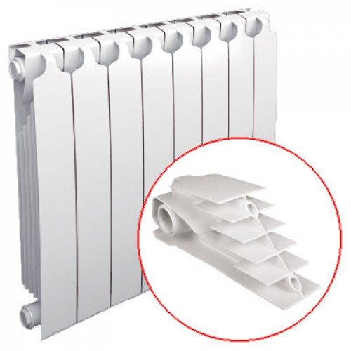 Отоплителните радиатори се произвеждат чрез леене и екструдиране. В първия случай това са по-масивни и издръжливи батерии със солиден дизайн. Вторият вариант е устройство от няколко части. Централната оребрена част с въздуховоди е направена чрез екструзия със зададени параметри и форми. След това се притиска, заварява и залепва към колекторите. Той има шевове, но стените на радиаторите са по-тънки, консумира се по-малко метал, така че цената е по-ниска. Най-добре е да го монтирате за индивидуално отопление с ниско налягане в системата и добро качество на топлоносителя.