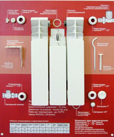 Ако говорим за масата на биметалните и алуминиевите радиатори, тогава в този параметър те са почти идентични. Следователно, скобата за биметален радиатор може успешно да се използва за монтиране на алуминиева батерия.