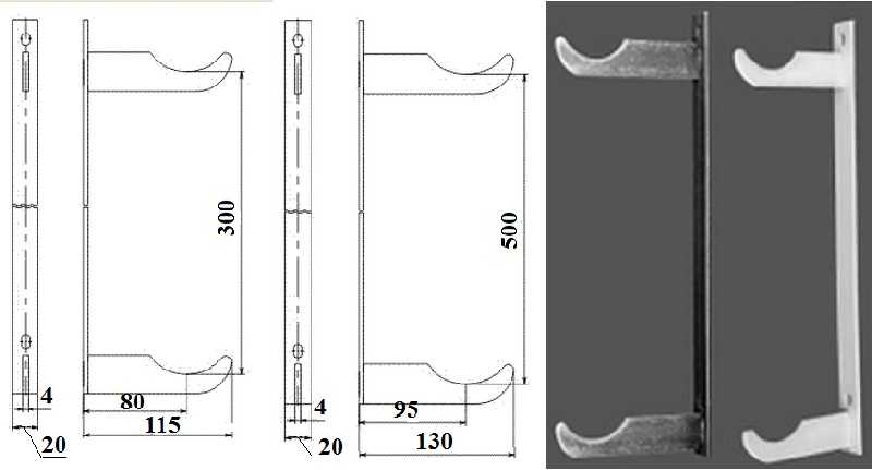 Забележка! Помислете за размерите на опорите, преди да закупите. Те са направени за закрепване на секции с различна дълбочина. Във всеки случай държачът трябва да осигури междина на стените най-малко 30-50 mm.