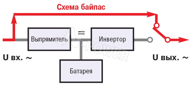 - отваря и двата пътя за TN: към батерията и по байпаса.