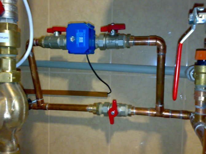 Снимка 2. Байпас, монтиран на тръбата на отоплителната система. Дизайнът използва сферичен кран.