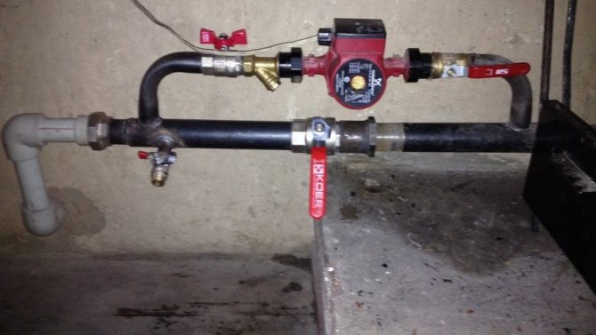 Байпасът на помпата ще бъде по-малък или със същия диаметър като основната линия. Как да направите байпас за отопление правилно, в този случай няма основна разлика. В края на краищата той е инсталиран само така, че в случай на изключване на помпата циркулацията може да продължи чрез гравитация.