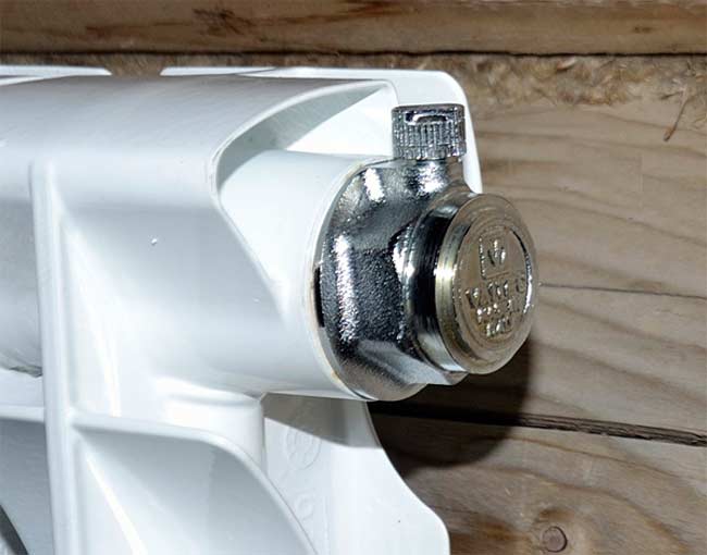 Клапанът се завърта на ръка, което позволява отдушник на въздуха.