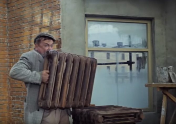 Не беше лесно за един човек да инсталира чугунена батерия. Не ставаше въпрос за сложността на връзката; за да се вдигне и задържи чугунения радиатор, бяха необходими поне двама души.