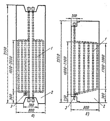 Панелът на перваза на прозореца (фиг. 1) е плоча от бетон от клас 200-250, в която е вградена серпентина от тръби с диаметър 20 mm. За топлоизолация на панела от външната стена между стената на панела и външната стена се полага изолационен слой от шлакова вата с дебелина 30-40 мм. Възможно е да не се използва изолационен слой, но в този случай е необходимо да се остави въздушна междина от 40-50 mm между вътрешната повърхност на панела и външната стена.