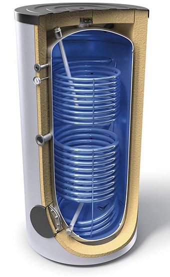 | İlave bir devre ve DHW için başka bir devreye sahip depolama tankı. Sıcak su temini için ısı eşanjörü, yemek pişirmek için kullanılan su için sıhhi standartları ve gereksinimleri ihlal etmeyen alaşımlardan yapılmıştır. | Çift devreli bir kazanın yerine kullanılır. Ek olarak, neredeyse anında sıcak su temini avantajına sahipken, çift devreli bir kazanın hazırlanması ve tüketim noktasına ulaştırılması için 15-20 saniye gerekir. |