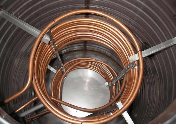 Depolama tankının bakır iç ısı eşanjörleri.
