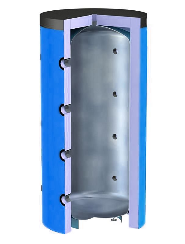 Başka bir ucuz 300 litrelik tampon tankı. Tasarım gereği, maksimum izin verilen 6 bar çalışma basıncına sahip ek ısı eşanjörleri olmayan bir depolama tankıdır. İç duvarlar, önceki durumlarda olduğu gibi, karbon çeliğinden yapılmıştır. Ana fark, NOFIRE teknolojisine göre polyester malzemeden yapılmış önemli, çevre dostu bir ısı yalıtım katmanıdır. yüksek sınıf ısı ve yangına dayanıklılık. Menşe ülke: Beyaz Rusya