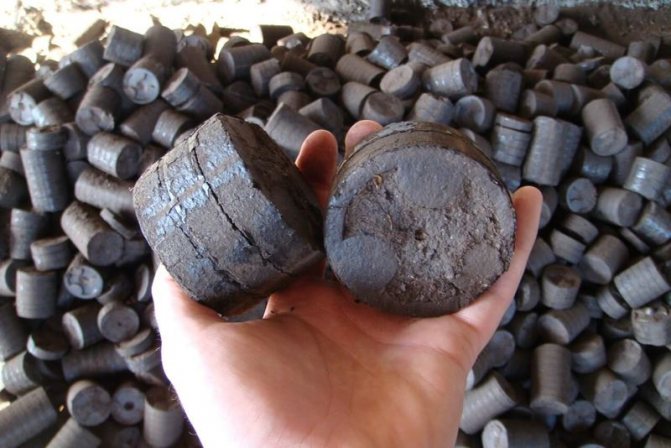Briketler - turba, saman veya odun olabilir. Sadece preslenerek üretilenlerin kullanılması idealdir. Talaş halinde parçalanan briketler, kazana zarar vermemek için sadece yakacak odun veya kahverengi kömür ile birlikte kullanılabilir.