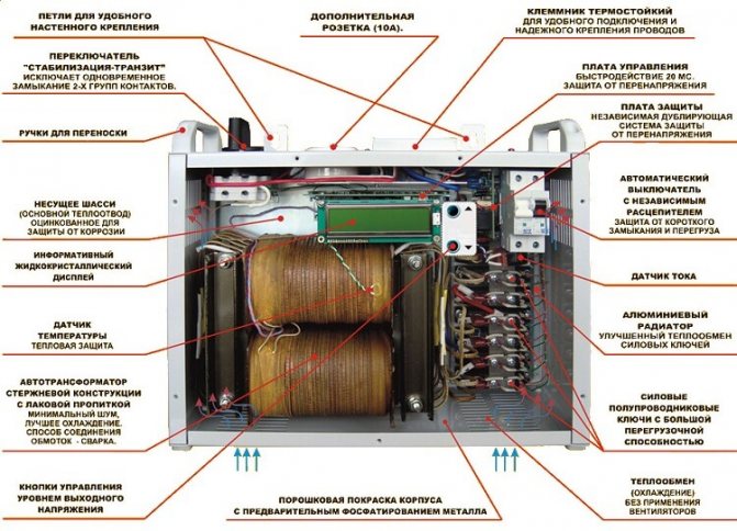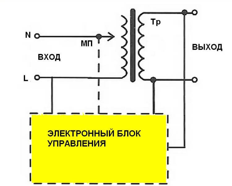 Röle cihazları, otomatik bir transformatöre ve transformatörü kontrol eden özel bir elektronik devreye sahiptir. Bir farkları var - onlar röle, bu yüzden isimlerini aldılar.