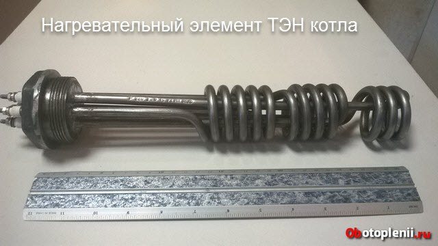 Kazanların ısıtma elemanlarının çalışması, soğutucunun boru şeklinde ısıtma elemanları kurulu bir tanktan geçişine dayanır. Borunun içindeki spiralin yüksek direnci nedeniyle, akım spiral boyunca akarken artan miktarda termal enerji açığa çıkar. Ayrıca, ısıtma elemanlarından geçen soğutucuyu ısıtmaya da gider.